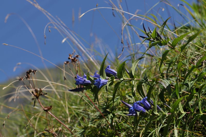 Papi ist wie eine Uhr: Genau vor einem Jahr waren wir Richtung Martinsmad unterwegs, auf 2000 Meter lag damals der erste Schnee. Heute sind wir wieder auf der Strecke, es ist sehr warm. Oben auf der  Alp Tschinglen ist es wunderbar: es wird frisch gemäht, ein unbeschreiblicher Duft steht über den Wiesen! –  Der blaue, langstielige Enzian ist in voller Blüte, die Berganemonen sehen aus wie Struwwelpeter und die Bäche bringen das letzte Eis des Vorabgletschers zu Tal, was ja wirklich traurig ist. Dennoch muss ich ins Wasser. Ihr wisst, ich sage zum Wasser „Wa“. Dieses Mal ist das Wasser aber wirklich anders als in der Badewanne: Es ist eiskalt. Dennoch, nichts wie rein. Hier geht’s zu den Ausflugsbildern.