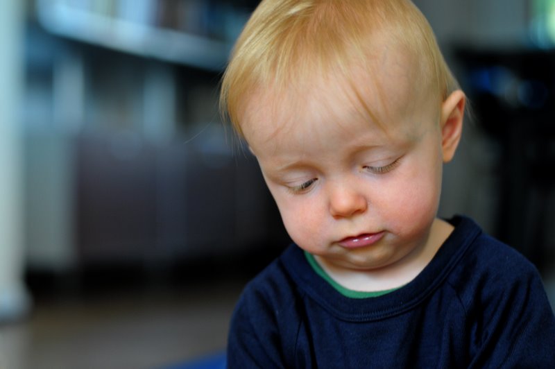 Ich bin jetzt 15 Monate alt, rede erste Wörter: Essen („Ässe“), Mama, Papa, Katze, Ba(gger), Was(ser), Chäs, UaUa, krabble und klettere wie wild, esse mit Löffel, Gabel und am liebsten mit den Händen, und mache erste Schritte allein … und ganz besonders gerne schmökere ich in meiner kleinen Bibliothek.