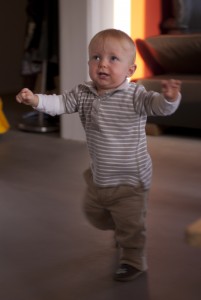 Seit dem 17. September 2009 bin ich nun immer öfter auch aufrecht unterwegs: Das ist schon ein unsicheres Gefühl so am Anfang. Die Aufnahme hat mein Götti Cyrill gemacht. Da ich so schnell unterwegs bin, flitze ich durch die Verschlusszeiten, meinte Cyrill zu diesem Bild …