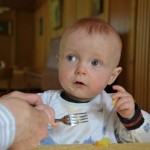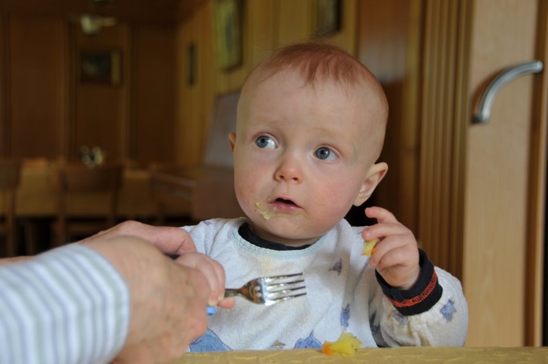 Jetzt habe ich vier Wochen hinter mir, in denen ich fast immer krank war: Ich hatte hohes Fieber, Schnupfen, Ohrenweh, es kamen Zähne, und, da ich immer höher hinauf wollte, gab es auch härtere Stürze. Gut gibt es jetzt immer sagenhafteres Essen: Heute verdrückte ich feinen Spargel aus Flaach! Das war der Hammer!