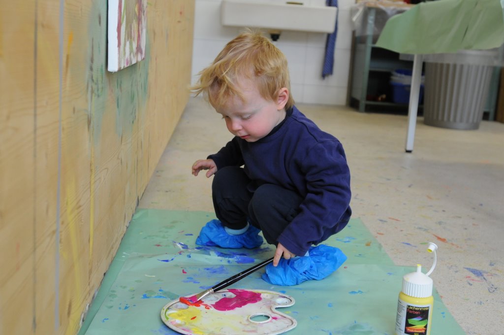 Heute war für mich ein besonderer Tag: Ich durfte das erste Mal „in die Schule“. Auf Einladung von Colette ging’s in das Malatelier ihrer Schule. Was ich da alles erlebt habe! Tobias, Mami und Papi waren natürlich auch mit von der Partie. Ergebnis war ein Bild, das nun in unserer Küche hängt. Ganz lieben Dank an Colette und Tobias für ihren tollen Einsatz!